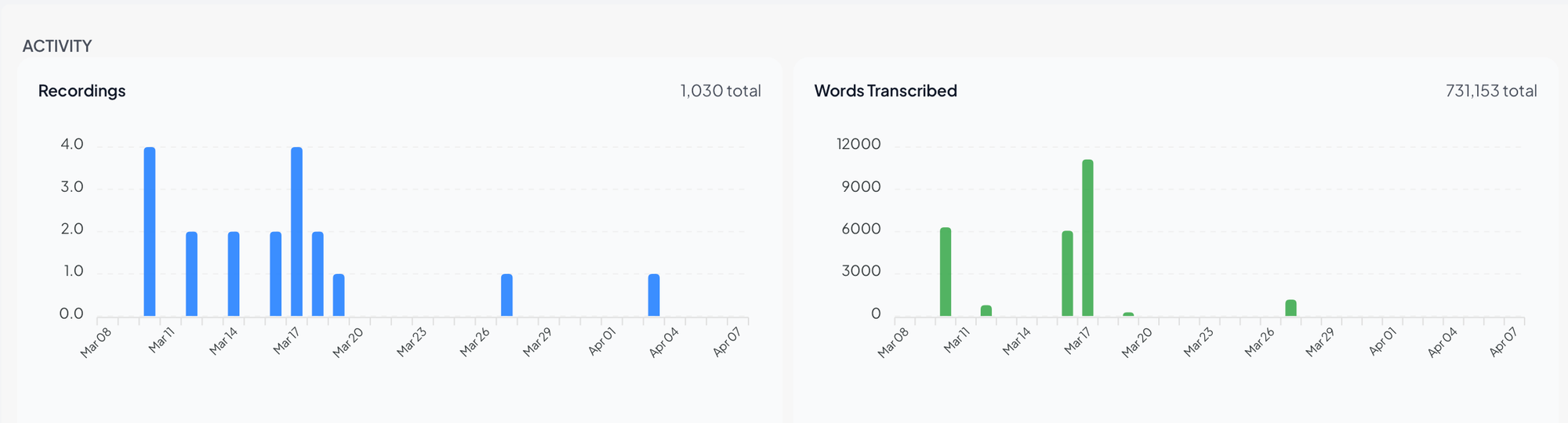 Activity Charts & Recordings List Upgrade