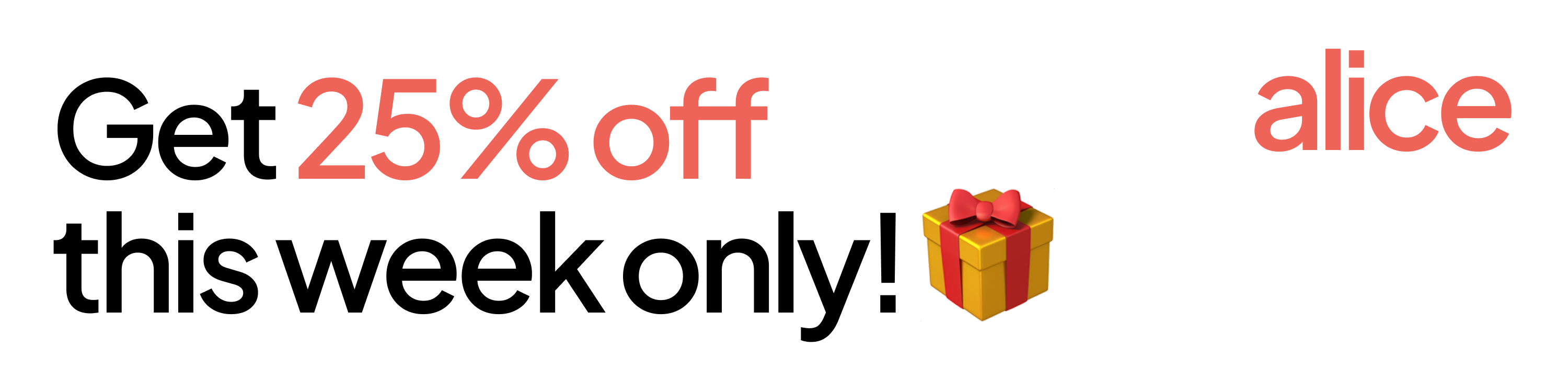 Get a 25% bonus on minutes this week! Just email the code 25%october to alice@aliceapp.ai after you buy a Standard or Large package before Friday 10/24, 8pm PST.